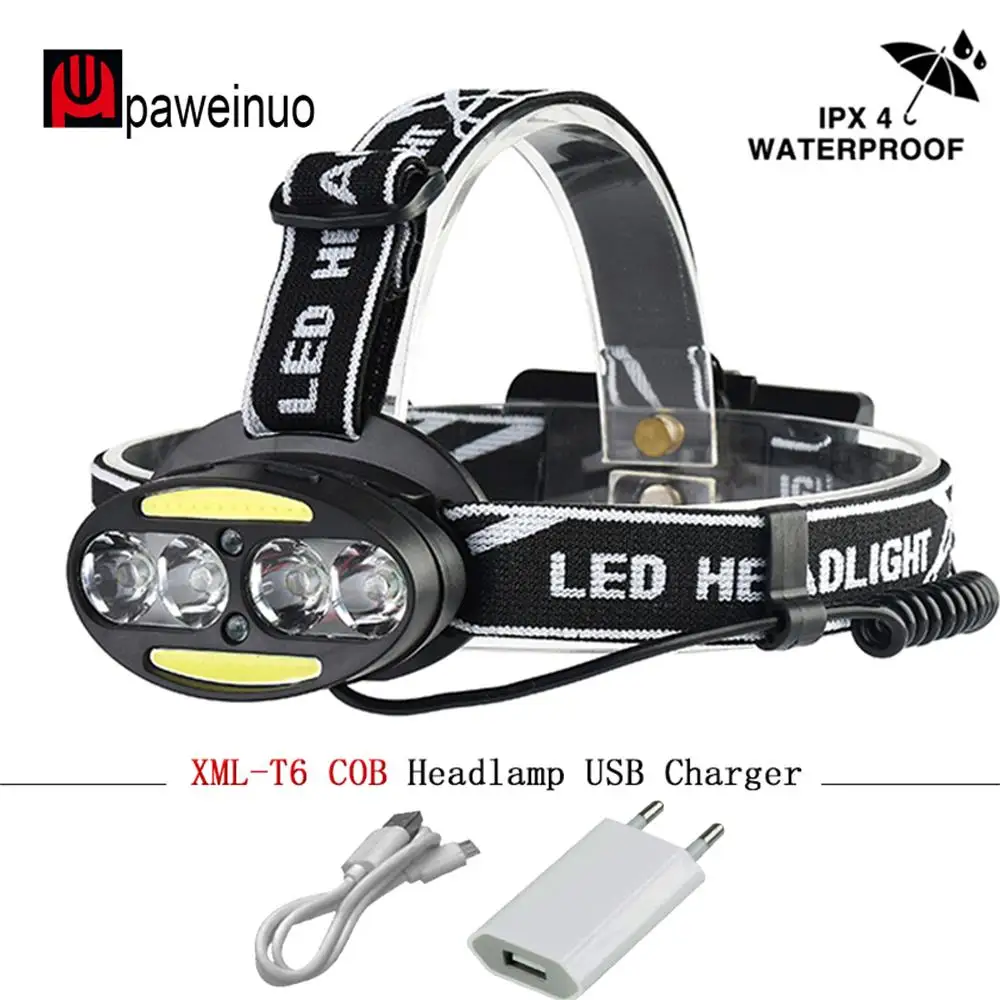 4 CREE XML-T6 2Cob Led headlamp ir sensor headlight flashlight use rechargeable 18650 battery waterproof for fishing camping led Reviews,