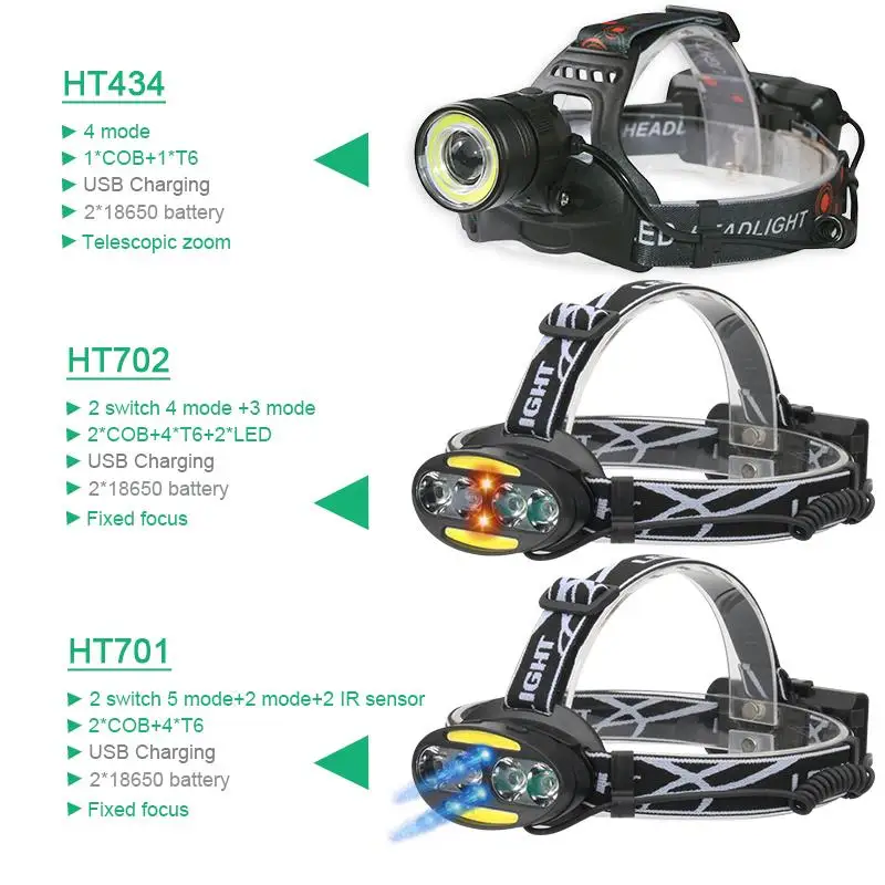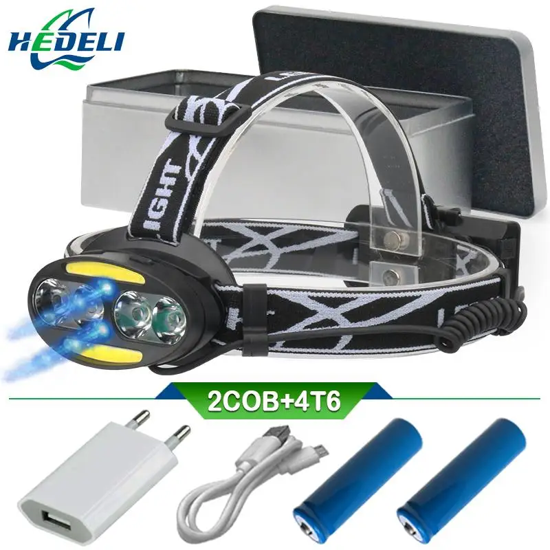 t6 + cob Induction head torch led headlight sensor rechargeable headlamp 18650 battery usb recharge spotlight hunting head lamp